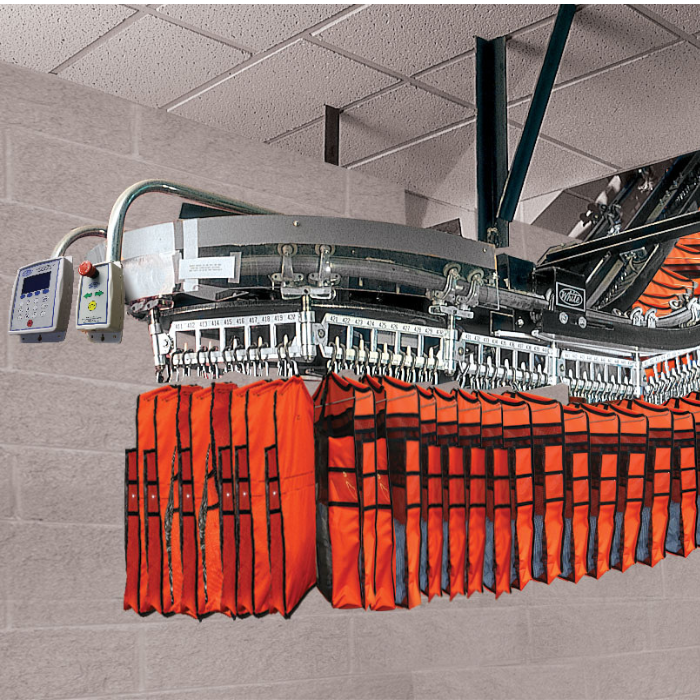 By mounting the system from the ceiling, facilities can fully utilize vertical storage while keeping the floor area open for other operational needs.